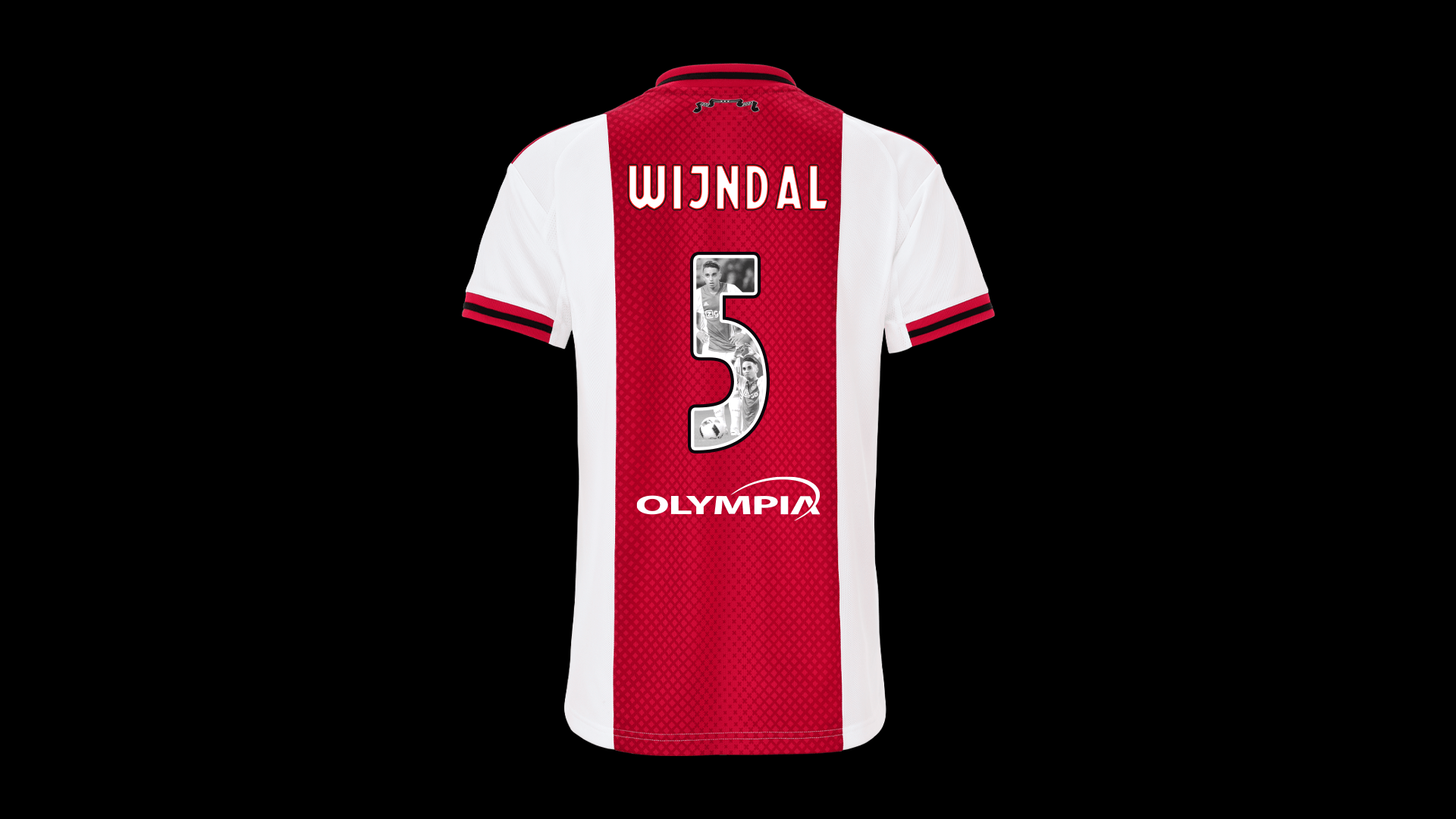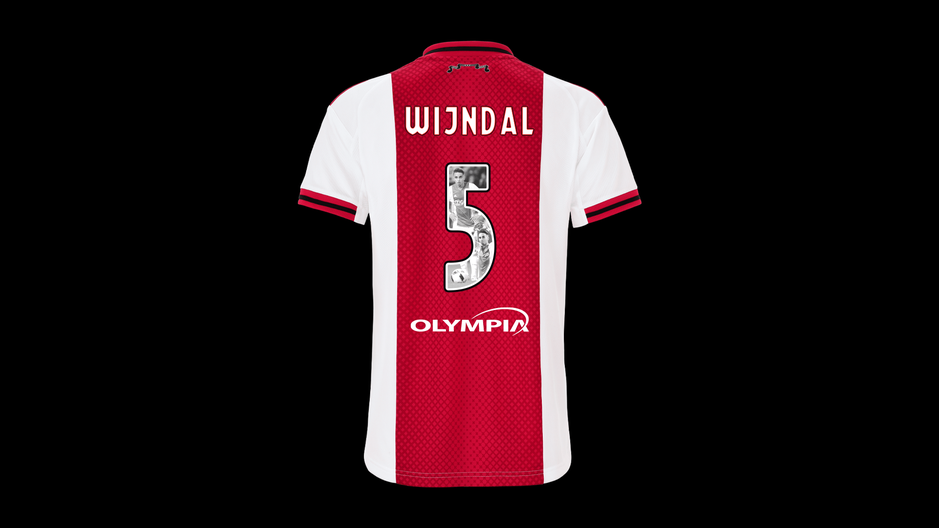 Wedstrijdshirt met speciale Abdelhak Nouri-rugbedrukking, gedragen en gesigneerd door Owen Wijndal. Dit shirt is gedragen tijdens Ajax - Excelsior de Nouri Foundation Charity Match.