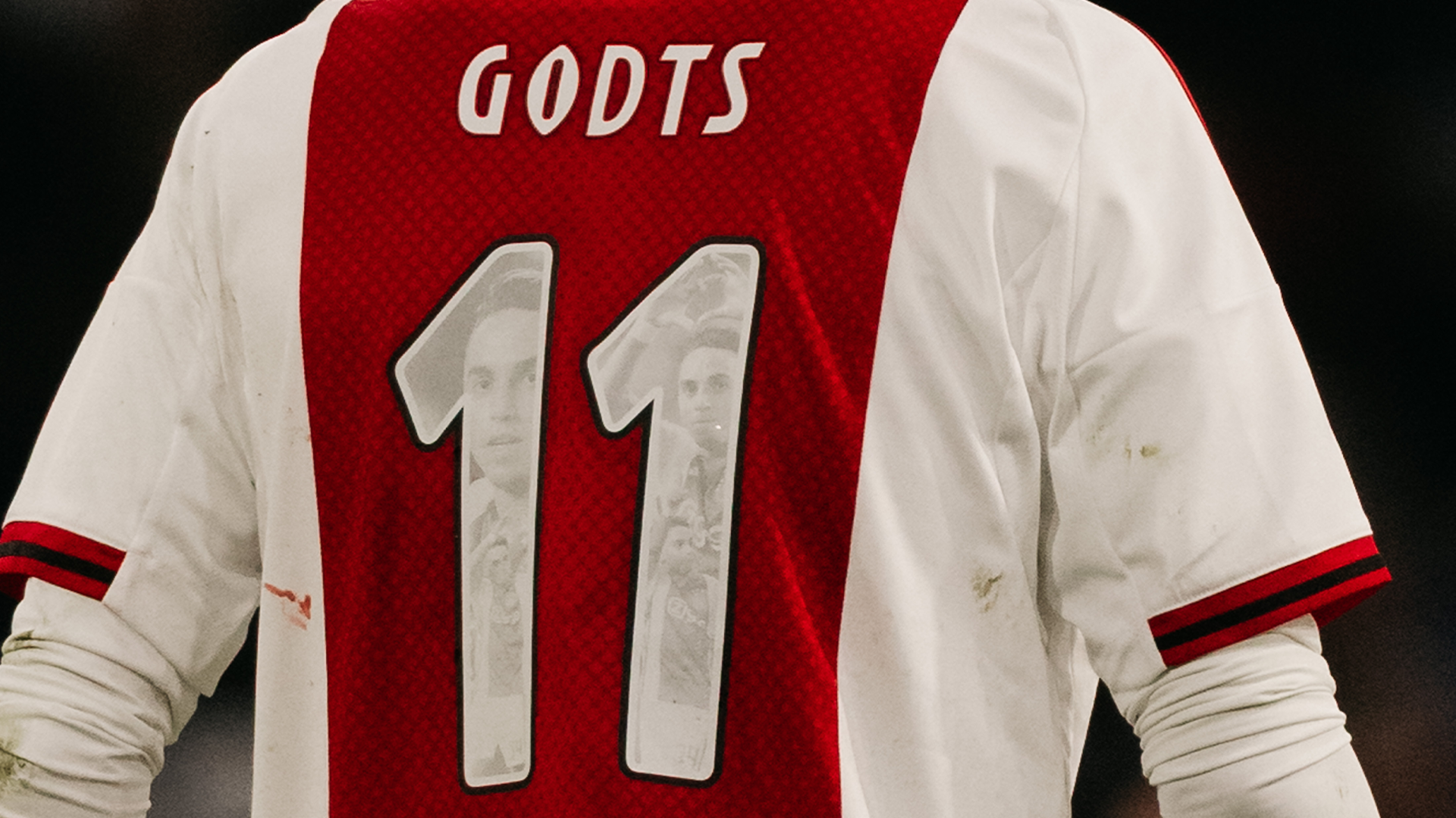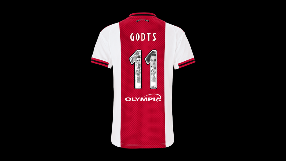 Wedstrijdshirt met speciale Abdelhak Nouri-rugbedrukking, gedragen en gesigneerd door Mika Godts. Dit shirt is gedragen tijdens Ajax - Excelsior de Nouri Foundation Charity Match.