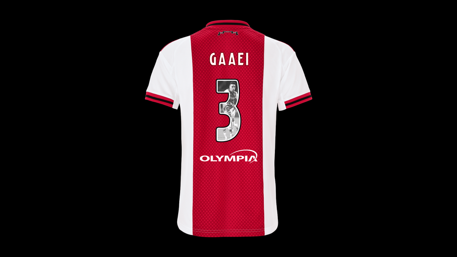Wedstrijdshirt met speciale Abdelhak Nouri-rugbedrukking, gedragen en gesigneerd door Anton Gaaei. Dit shirt is gedragen tijdens Ajax - Excelsior de Nouri Foundation Charity Match.