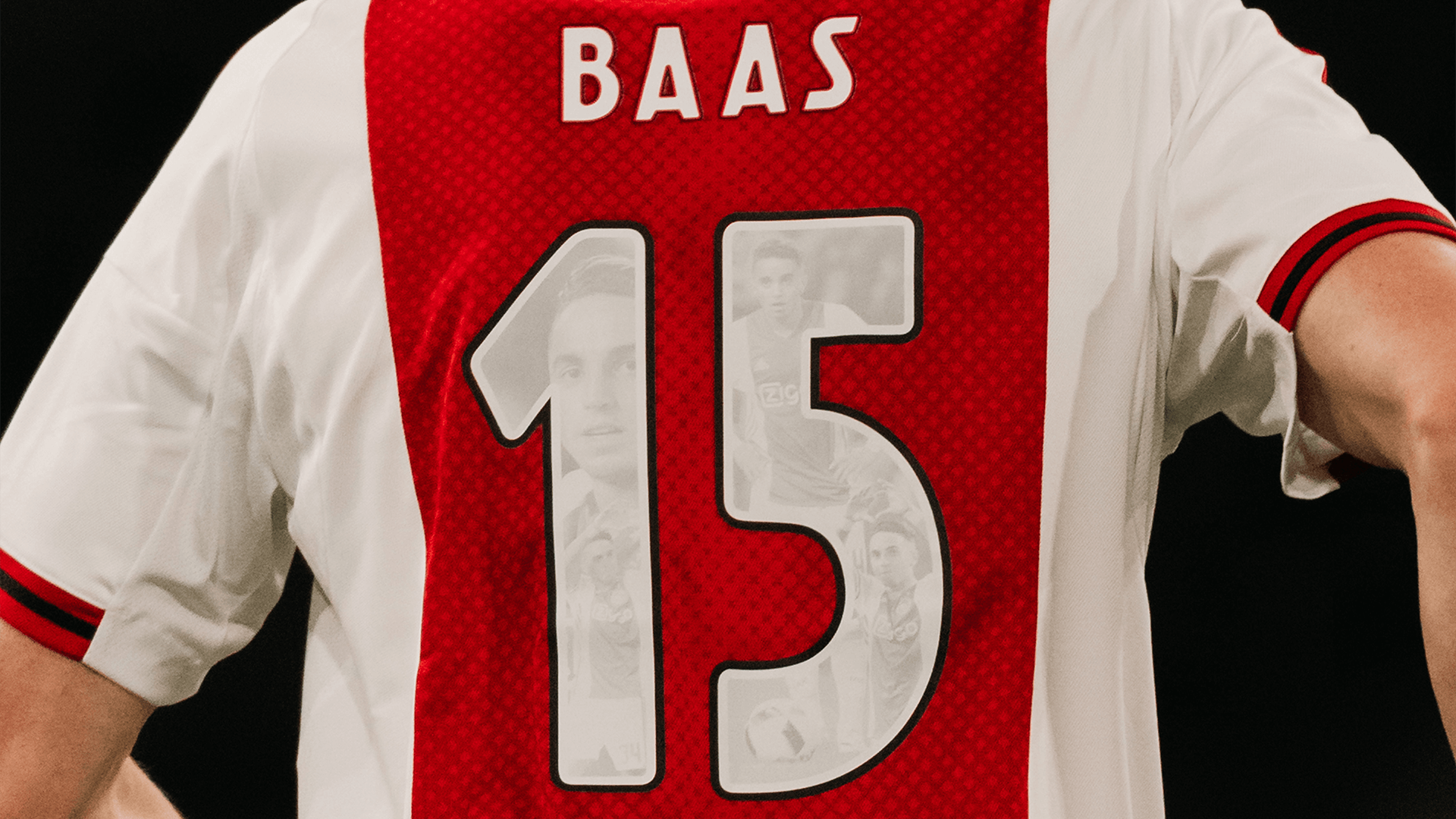 Wedstrijdshirt met speciale Abdelhak Nouri-rugbedrukking, gedragen en gesigneerd door Youri Baas. Dit shirt is gedragen tijdens Ajax - Excelsior de Nouri Foundation Charity Match.