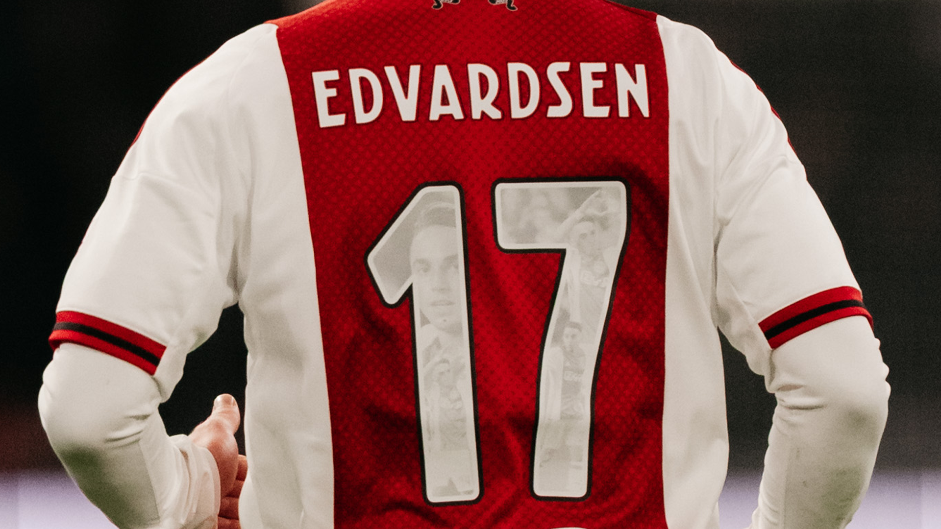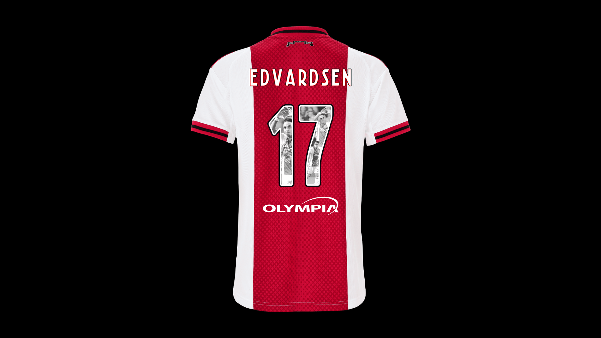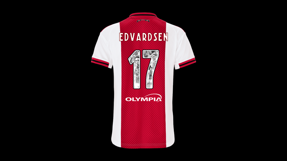 Wedstrijdshirt met speciale Abdelhak Nouri-rugbedrukking, gedragen en gesigneerd door Oliver Edvardsen. Dit shirt is gedragen tijdens Ajax - Excelsior de Nouri Foundation Charity Match.