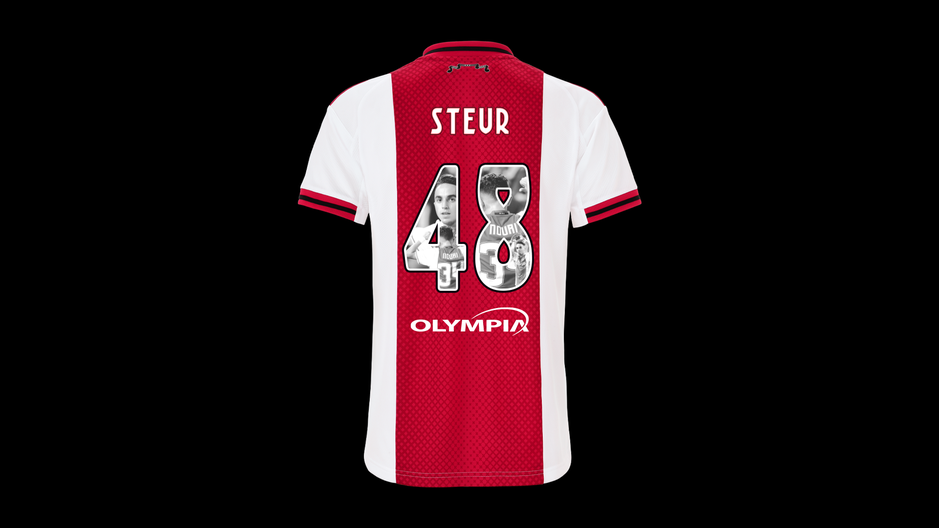 Wedstrijdshirt met speciale Abdelhak Nouri-rugbedrukking, gedragen en gesigneerd door Sean Steur. Dit shirt is gedragen tijdens Ajax - Excelsior de Nouri Foundation Charity Match.